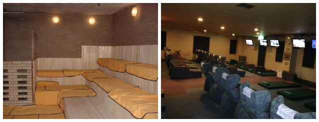 虽然是一家胶囊酒店,但这栋7层的建筑,完全不是一座拥挤的“蜂巢”。虽然从1-5层都是住宿区,但休息区、浴场、三温暖、电视、空调一个不少,甚至还有游戏室和按摩服务!