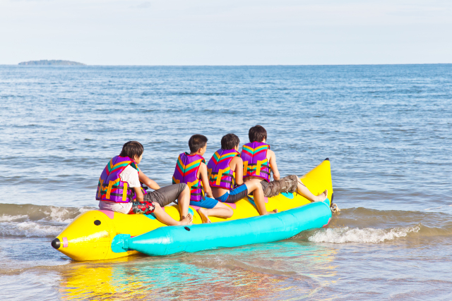 香蕉船是老少皆宜的入门级水上娱乐项目,由快艇飞速牵引着大香蕉在海上展现“轻功水上漂”,如果想要刺激一点,也可以要求船长开快点,体会一把飞速漂移,全身湿透的快感。