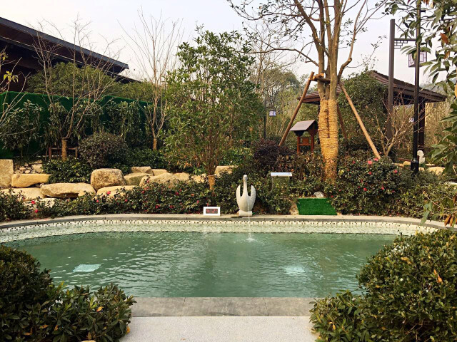 进入汤池便能感受到扑面的热浪,8个功能泡池装饰都有着枯山水艺术的味道。檀香、薰衣草、樱花、客家药酒、芦荟等等,每个泡池均具备不同的功效。