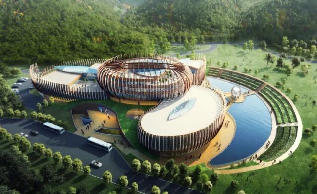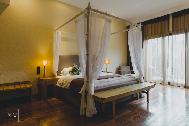 占地1300亩,连绵六座山头,客房量667间,210座建筑散落,因为拥有私人水库,所以有着莫干山难得的湖景,一山一湖,风光旖旎别有洞天。