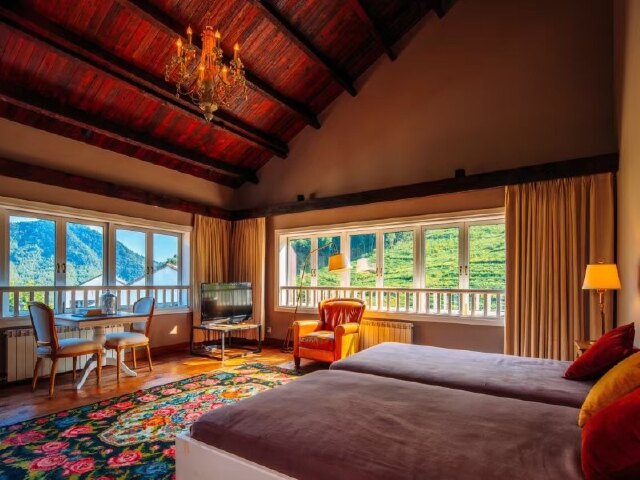 从精致的地砖,到黑色大理石的梳妆台、黄铜的饰品、古董般的羊毛地毯,无不散发着古典优雅的气息。这些房间或临茶园,或面湖景,要么就独享浩瀚竹林,风景独美。
