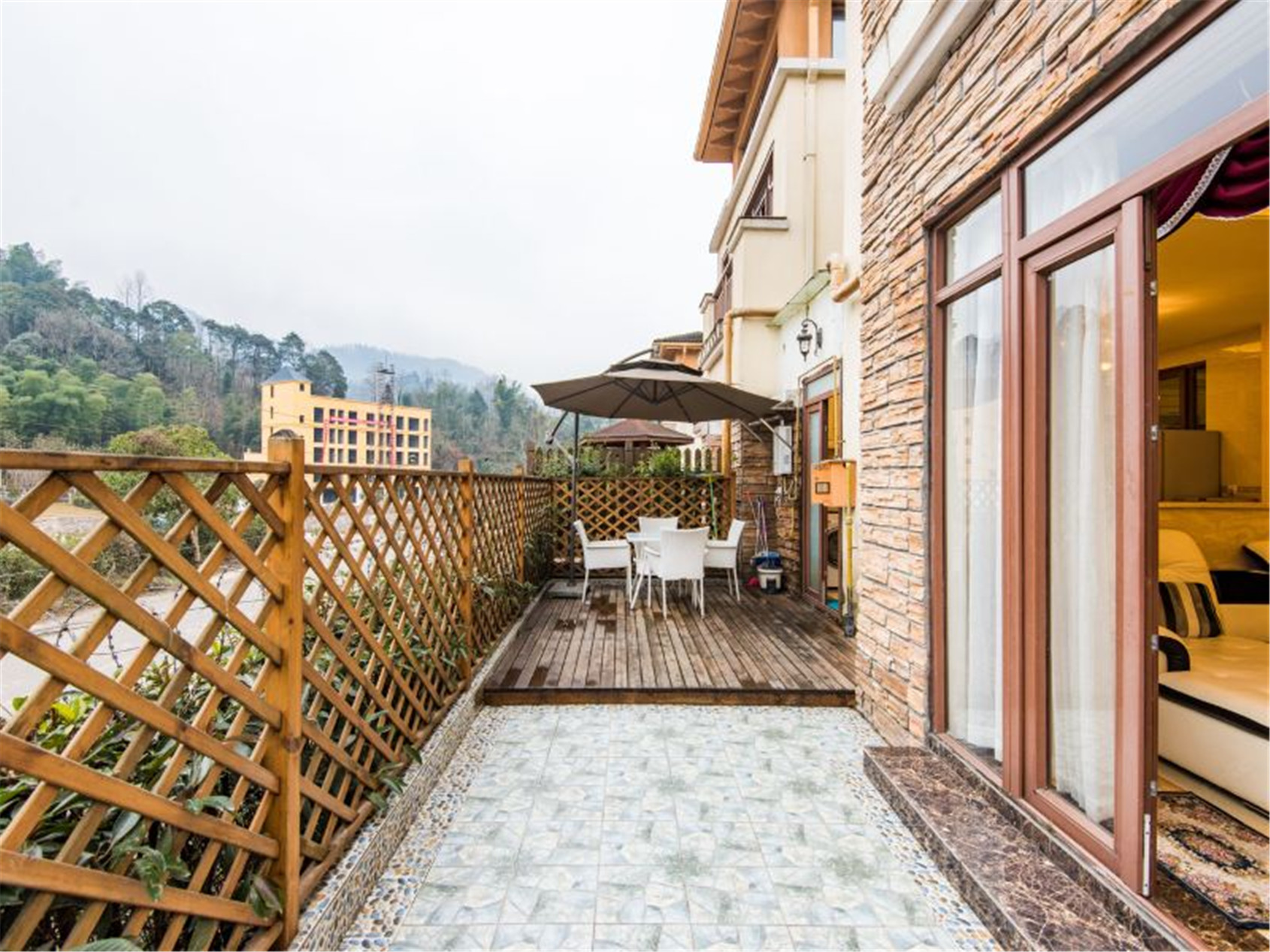 阳光明媚的时候,你可以在户外阳光餐厅边欣赏美景边享用早餐;饭后可以听着潺潺的流水声和朋友一起品茶切磋麻艺,也可以在二楼观山听水,促膝长谈,还可以在客厅里和家人一起欣赏忙日里没有来得及观看就已下映的大片!