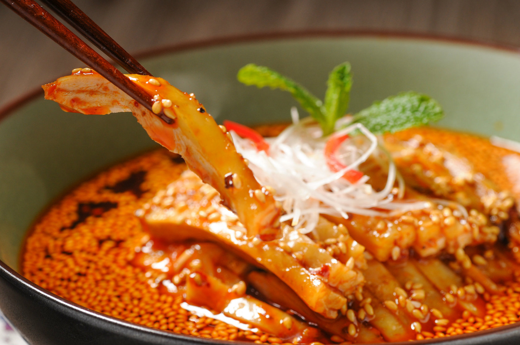 没有气派的装修,精致的餐具,这家平民价的小馆子却用地地道道的四川味道留住了食客的心,血旺、麻油鸭、拌鸡片、冰粉,每一道小吃都是传统的四川风味味,令无数游客驻足停留。