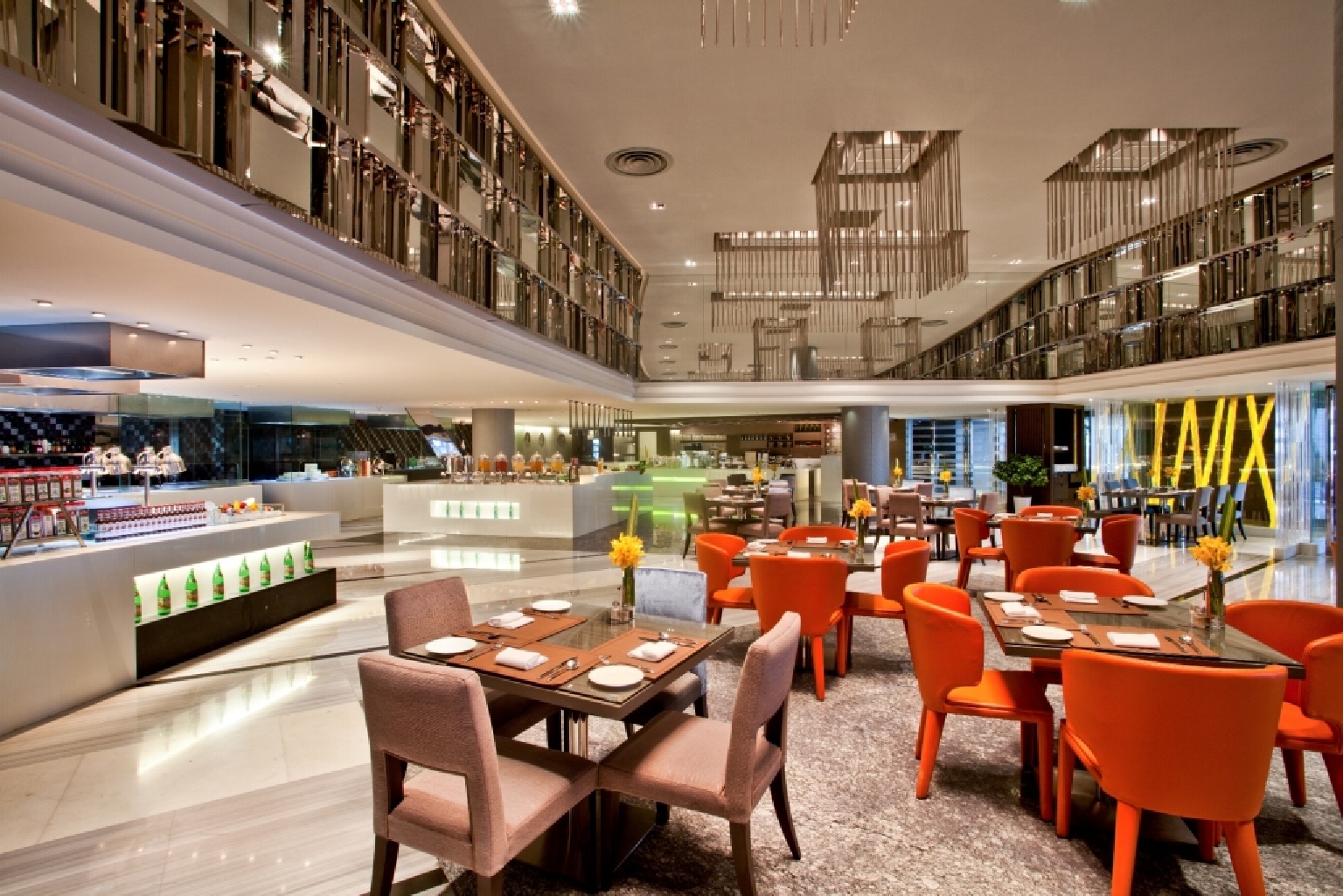 酒店的全日餐厅主要提供各地美食,意大利、东南亚菜系或者是摩洛哥的香料食材都能品尝到,更有鲜美海鲜以及当季蔬菜,餐厅环境摩登而舒适,能欣赏到宁静如画的美丽湖景。