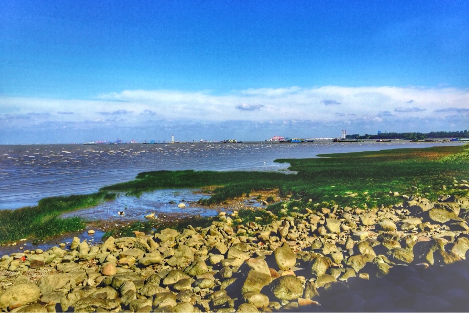 吴淞口,大概是上海人新的周末出游处。芦苇伸长,水草丰茂,沿江散落大大小小的生态岛。秋色渐起,候鸟穿行,在这样安静美好的地方,静听潮起潮落,是一件极美的享受。
