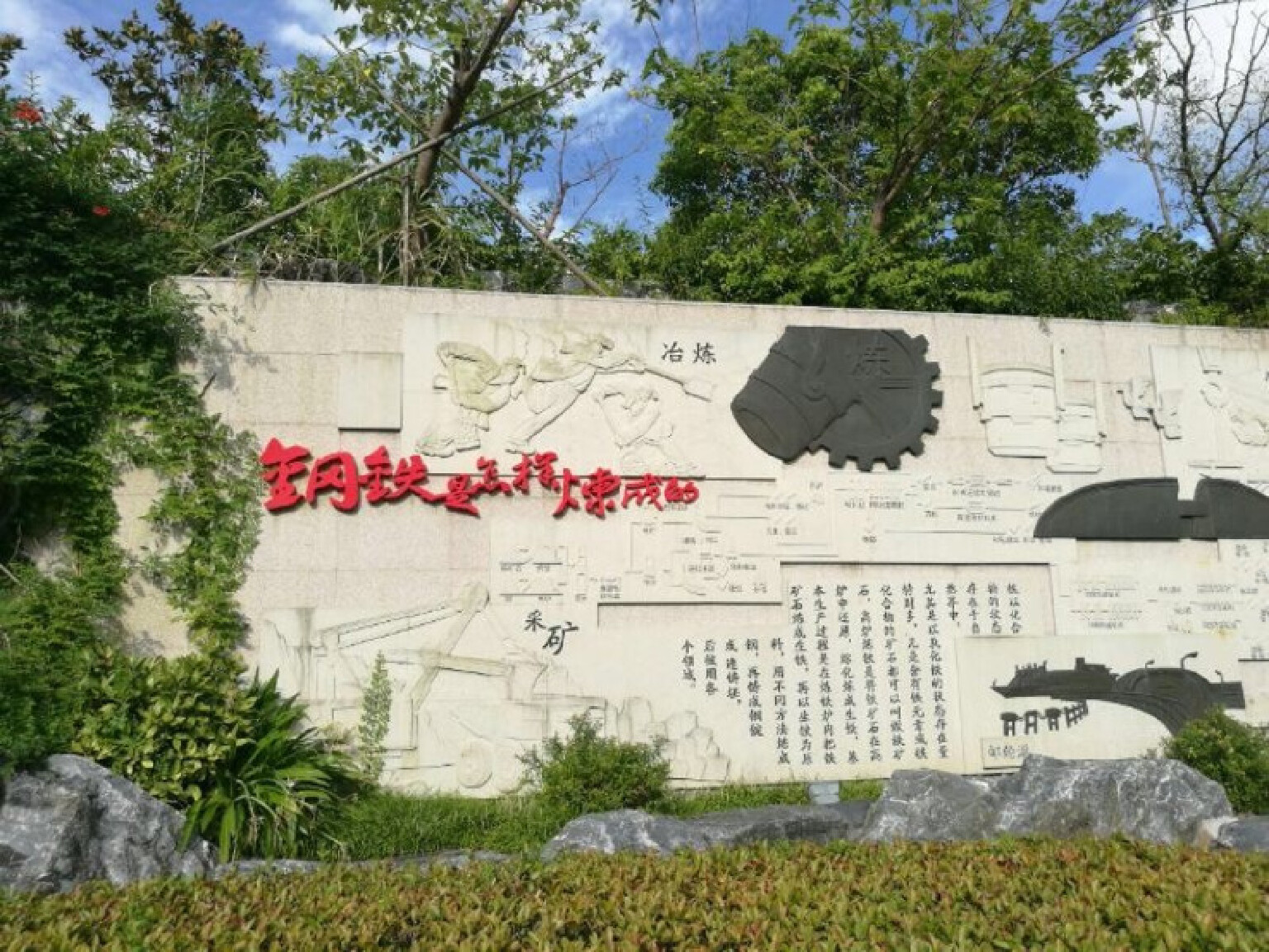 来湿地公园,还不能错过的就是被称作“小九寨”的矿坑花园了,这里是工业遗存的循环利用,钢之花的背景墙,潺潺流淌的钢渣绿水,依稀还能看到当初废钢渣堆场修复前的样子。