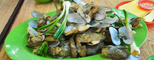 荷叶蒸鸡蒜蓉生蚝、椒盐濑尿虾,炒蛏子