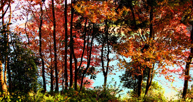 龙凤岛的秋天非常美,成片的枫林渐渐转红,继而层林尽染,如火如荼,绚烂成海,在蓝天碧水的映衬下,放佛一座置身湖中的世外桃源。