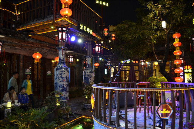 清花醉月,不仅名字很有中国文化气息,店内的装饰也很有古典美,沿着下坝坊沿河楼梯往上爬,就会看到。清花醉月一楼院子的设计十分古色古香,晚上还可以看到有位古装装扮的美女在院子里弹奏古琴。