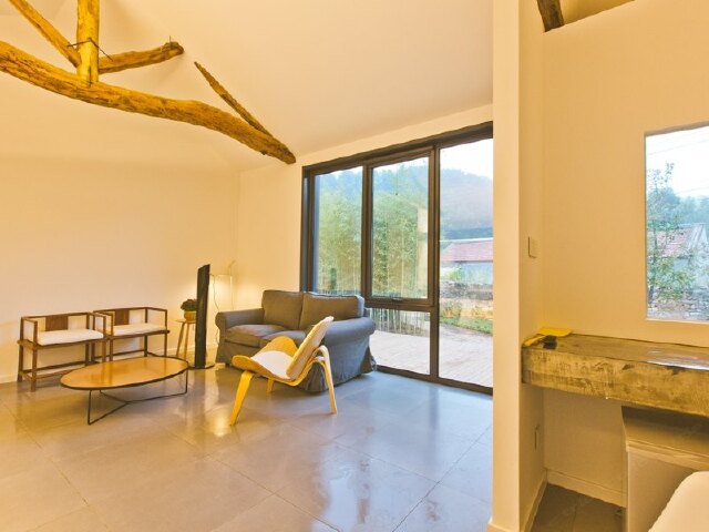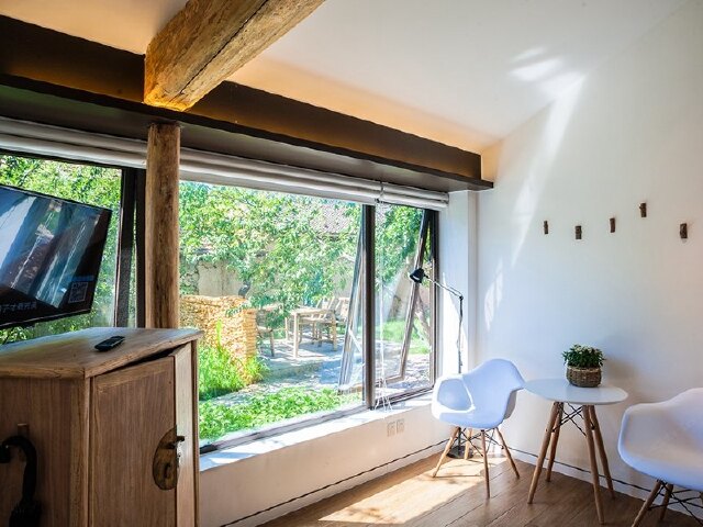虽然只是1室1厅1卫,但可供6、7人共用的小型会客区以及配备的投影设备,让这间小院除了享受乡村生活,也可以充当一下临时的小型会场。