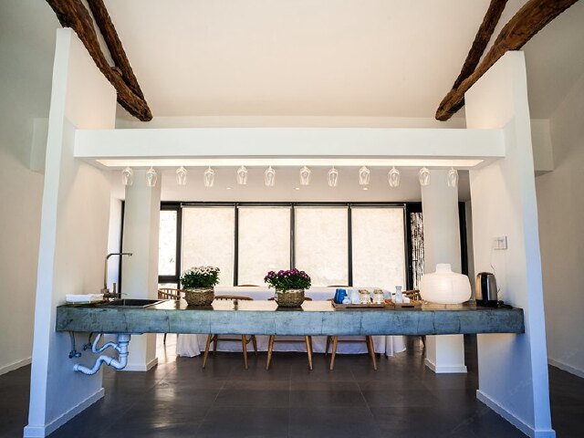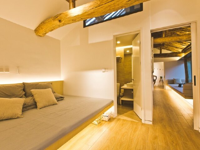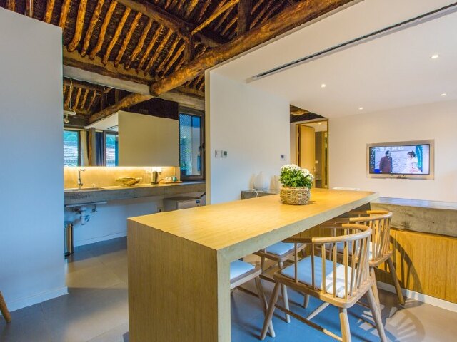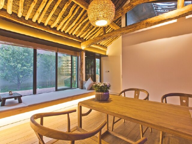 除了充满年代感的古朴房梁,室内没有一件老物件。家具器物都是现代高端品牌,连卫生间洗浴都采用的科勒,让都市人没有一点点不适应。