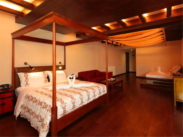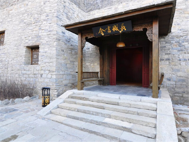 古北水镇长城书舍主题酒店紧邻度假区中部的长城书院和日月岛广场。外观远看似一城堡,内部布局为典型的木质架构,营造出一股浓郁的庄重、复古、简约气息。 远离城市的喧嚣,置身大山之间,感受古村落的独特魅力,享受天然氧吧的清新。