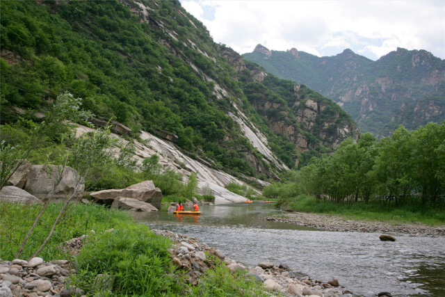一路怪石嶙峋、满目苍翠,在皮筏艇上享受锦绣的风光景色同时还能感受到飞激流险滩下的刺激漂流。