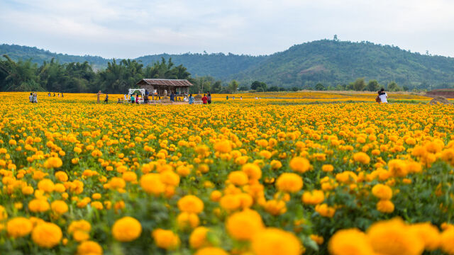 秋季赏菊,就是去四季花海。千亩的万寿菊,仿佛进入了菊花的海洋,明亮的黄不需要任何人工的调色,带着秋意的微凉,展现着它们的姿态。