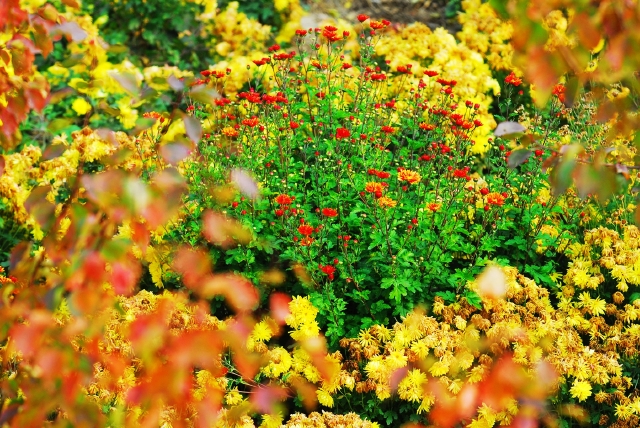 花台的菊花不同于其他,一两株的散落角落。这里的菊花如瀑布般落入巨石滩,绝对抓人眼球。