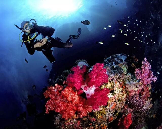 深潜需要中级潜水证,没有的话可以考一个。很多深度潜水游都提供考证服务,一般有SSI和PADI供选择。