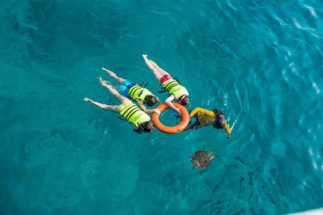 不用担心不会游泳,穿上救生衣,戴上潜水三宝,旱鸭子也可以浮潜哦。