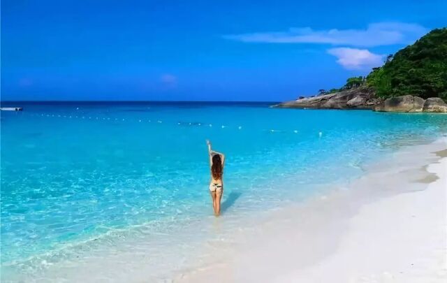 阳光下斯米兰翡翠蓝的海水清澈见底、耀眼璀璨,让人心醉的,只是看着就非常治愈!