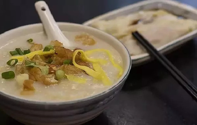 店里给每一碗粥都配了葱姜和酱油,你可以再叫上一份脆脆的油条,一起放入粥中,热乎乎地一碗下肚,整个人都会被满足感包围。所以,蔡澜才会称它是全香港最好吃的粥。