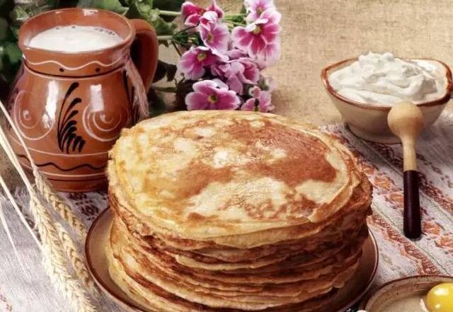传统俄式薄煎饼。有各式甜咸口味、各种造型,十分美味。