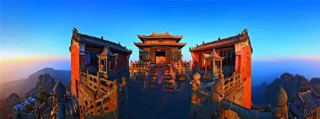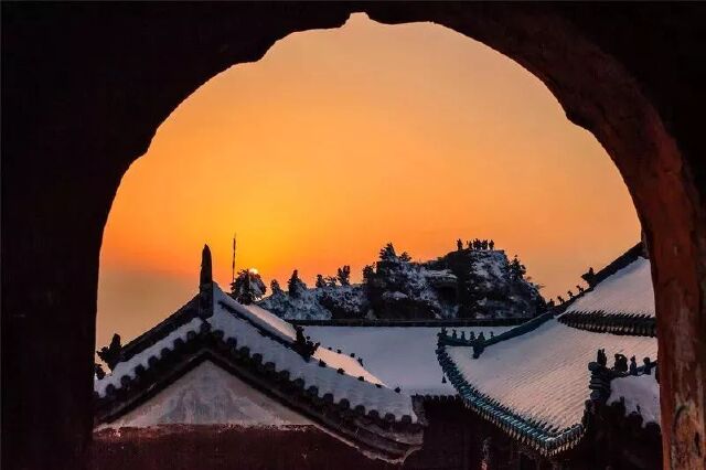 武当山的象征就是金殿,金殿坐落在武当山主峰天柱峰上。雪中舞剑的道士的地方就在此地,雪中的金殿美的就像仙境一般,如果你住山上,早晨可以观日出,那一束霞光照在金殿上时,你会觉得有万丈祥光,为武当山都镶上了金边。
