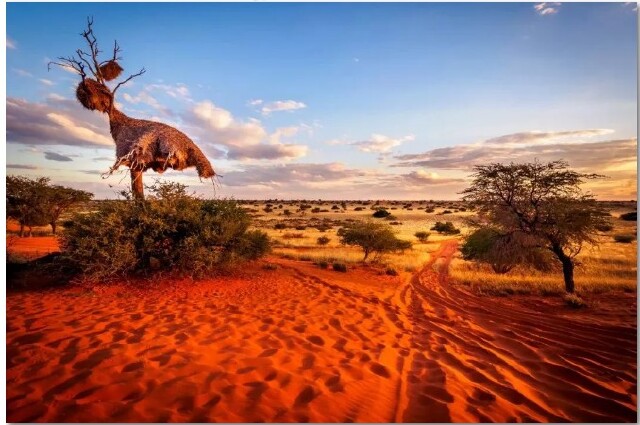 卡拉哈里沙漠为非洲南部内陆干燥区,也称“卡拉哈里盆地”,是非洲中南部的主要地形区。喀拉哈里沙漠南北最长处约1600公里,面积估计有930000平方公里。拿起相机,拍下这令人惊叹的红色沙漠,每一张都可以当手机背景图。