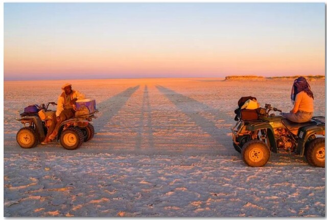 马卡迪卡迪盐沼是卡拉哈里盆地的一部分,处处可见盐霜。这里主要是干涸的沼床,上面长满的绿草,是食草动物十分重要的食物来源。许多鸟类也被盐沼的水所吸引,火烈鸟、鹭、红鹳构成了一道亮丽的风景线。雨季期间很多道路不通,建议驾驶四轮驱动车。