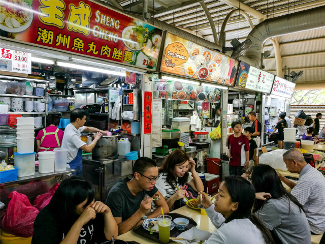“去新加坡旅游,必逛牛车水,在牛车水享美食必去麦士威路美食中心。这是一个很大很大的大排档,里面店家有几十家之多,由于这里汇集了新加坡的各色美食,所以当地人及游客都会来此,食客超多,午餐时间,座无虚席。