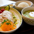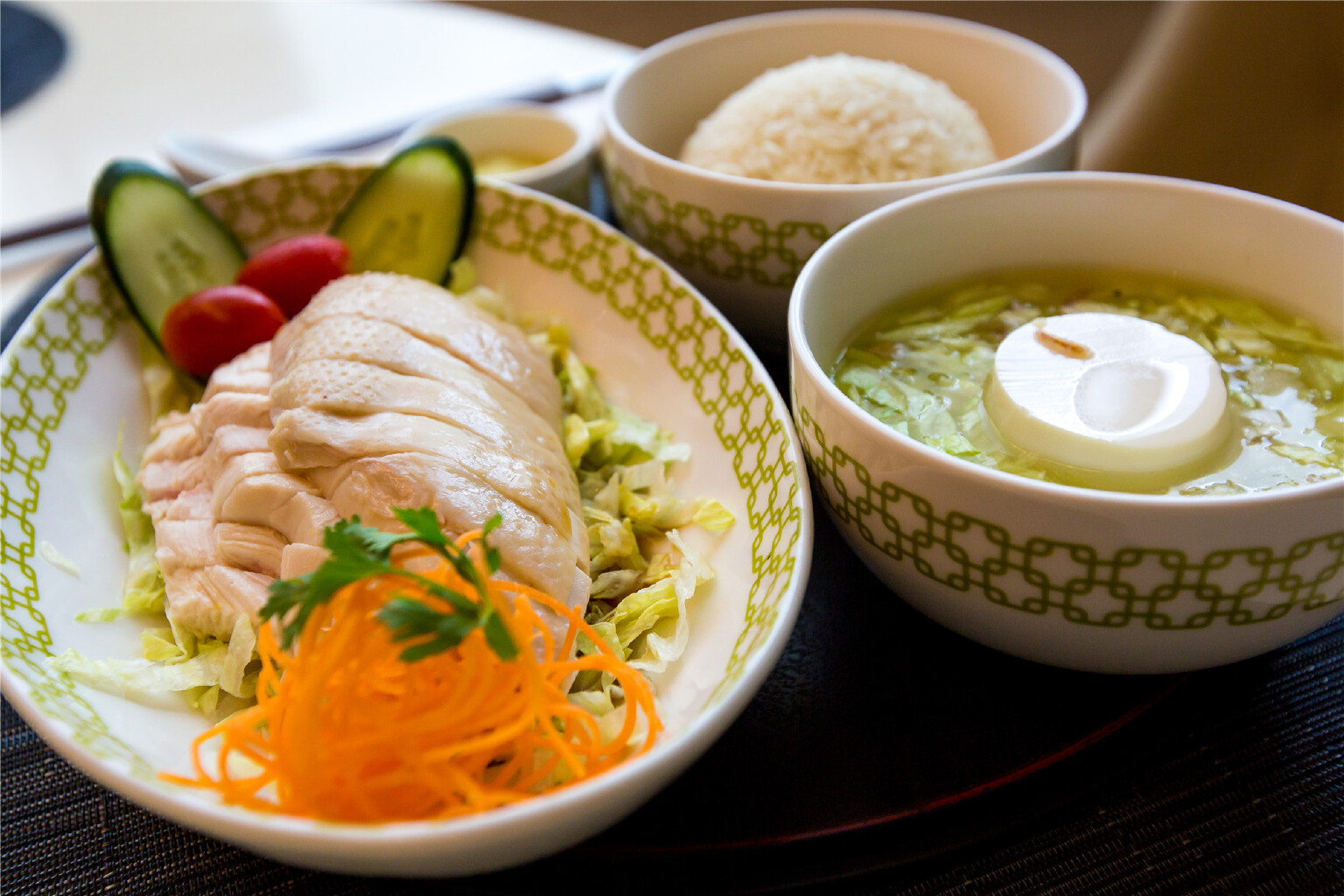海南鸡饭是新加坡的国菜,初到新加坡的人,必定会去品尝一下这道新加坡名菜。一盘整齐切块、鲜嫩多汁的白斩鸡,一碗香气扑鼻的鸡油饭,外加一碟新加坡特色蘸料,简简单单的套餐,却让人怎么也吃不腻!