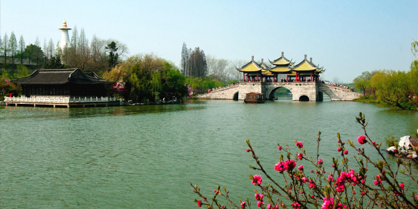 3月的扬州百花争艳,使整个扬州城都生气勃勃。瘦西湖中,你能够感受到江南水上园林的独特风采,穿过蜿蜒曲折的回廊,行走在樱红柳绿的风景中,别有一番江南风味。
