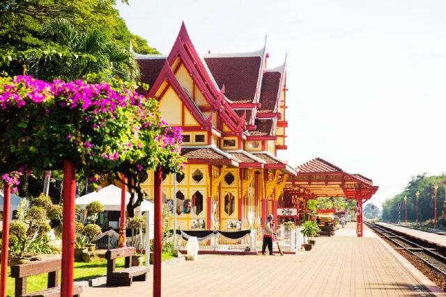 有着蔚蓝色大海和苍翠山峦的华欣。
