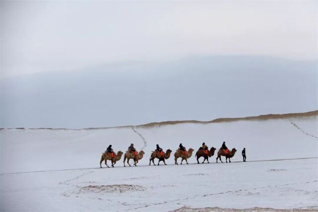 骑着骆驼行驶在大漠飞雪中,让“咯兹咯兹”的脚步声成为雪地里的唯一旋律。