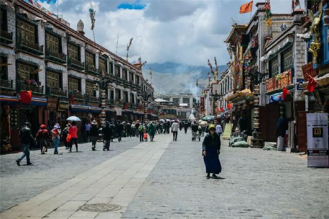 到八廓街买手信,品尝藏式美食,跟着信徒一起跪拜心中的信仰。