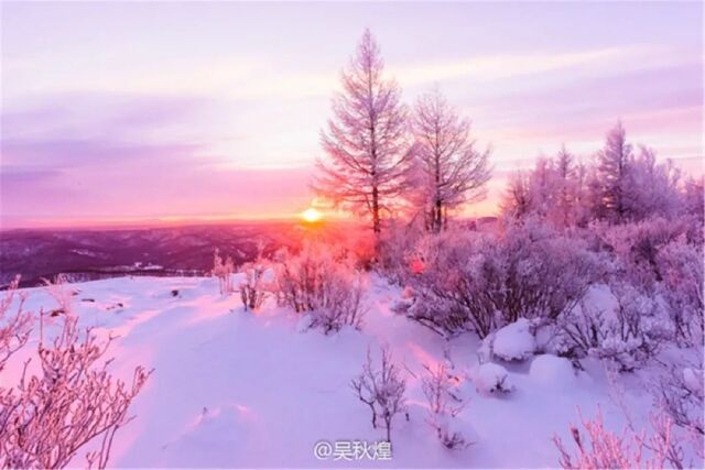 白狼峰的百里雾凇长廊美得令人沉醉,当朝霞撒向玉树琼花的那一刻,你不得不感叹大自然的魅力。