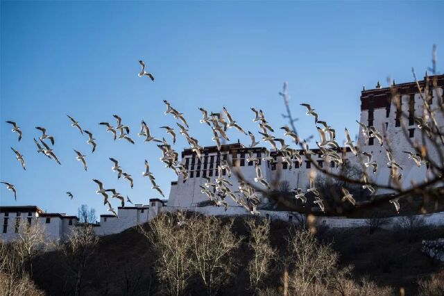 在拉萨河或宗角禄康公园观候鸟。每年冬天都能看到成群的候鸟在湖面翩跹起舞,那灵动的身影宛若落入人间的精灵。