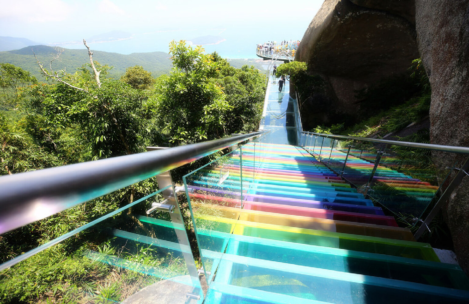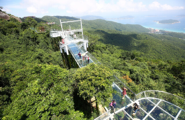 2018年8月27日,三亚亚龙湾热带天堂森林公园开辟了一条集观赏、体验,并且自带网红效应的全海景玻璃栈道。大佛石全海景玻璃栈道位于亚龙湾热带天堂森林公园的山顶上,高处海拔450米,是全国首座全海景玻璃栈道。