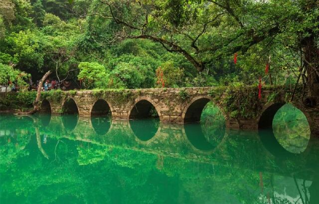 小七孔距离诸多影视剧的取景地都匀秦汉影视城约两小时的车程,是当地为数不多的5A景区之一。景区内有一座青石建成的七孔桥,当地人称之为忠贞之桥。