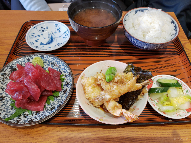 而价格更低的金枪鱼定食虽然以金枪鱼为卖点,但天妇罗也有4种。