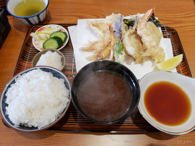 天房与大和寿司在同一层,店内的“天妇罗定食(天ぷら定食)”1800日元,却有9种天妇罗!