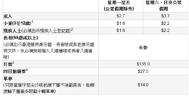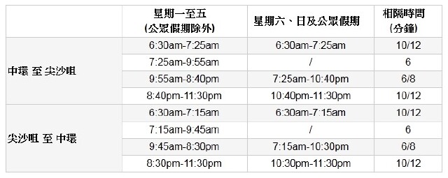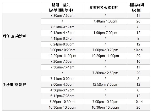 【中环-尖沙咀航班时间表】