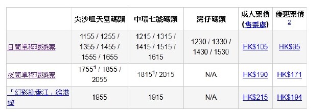 乘客可于网上预购及订票、尖沙咀天星码头或中环天星码头维/海港游售票处发售。