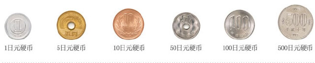 硬币有1日元,5日元,10日元,50日元,100日元,500日元,都是通用的。