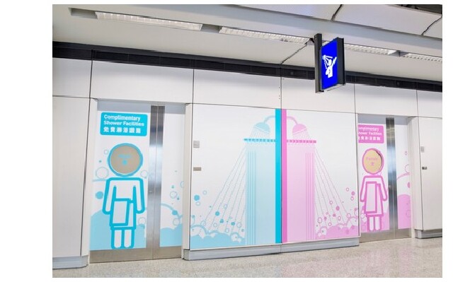香港机场免费提供公众浴室,只要出示登记证就可以免费领用新毛巾、沐浴露等,享受免费淋浴服务。