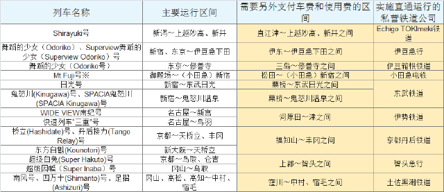 ※通票范围不包括新干线“希望(Nozomi)”号、“瑞穗(Mizuho)”号(都含非预定座位)。