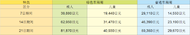 日本铁路通票有绿色车厢用和普通车厢的两种,这两种通票又分为7日期间、14日期间和21日期间用的多个选项。