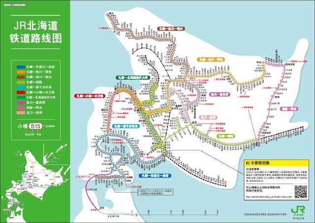 连结北海道内主要都市的铁路,是在北海道移动时最基本的交通工具。日本的铁路很准时,纵使在冬季也几乎没有误点的情形。车辆大多都很舒适,但价格并不便宜,对于游客来说,各式各样的优待票是出行必备。