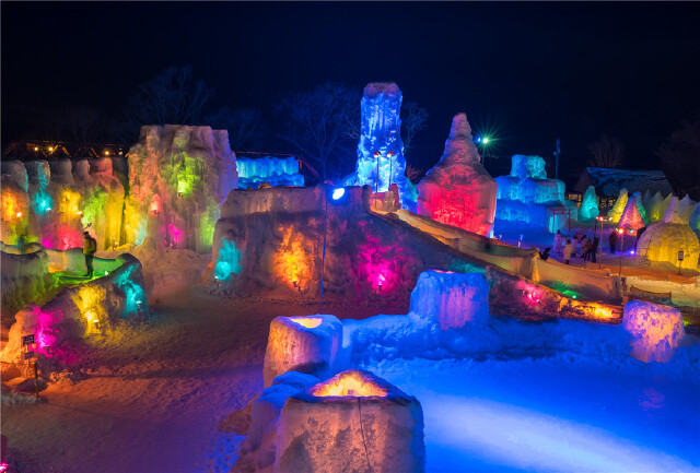 线路景点:从小樽前往苫鹉观光,可以游览爱丝冰城和雪地游戏。