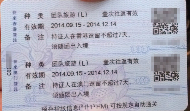 签证在你的港澳通行证上有,会标明你的G签,还是L签,假如有位旅客港澳通行证上注明是L签注,也就是跟团签注。
