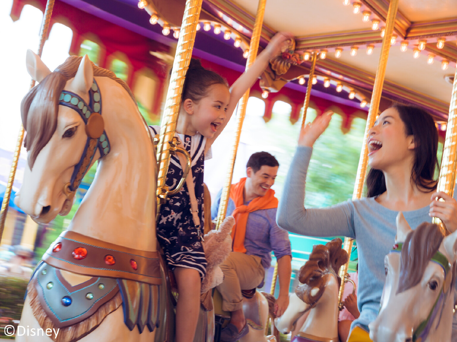 c.花车巡游(美国小镇大街):看迪士尼经典动漫形象在我们眼前唱歌、跳舞、招手,小朋友在一旁忍不住手舞足蹈。适合所有年龄