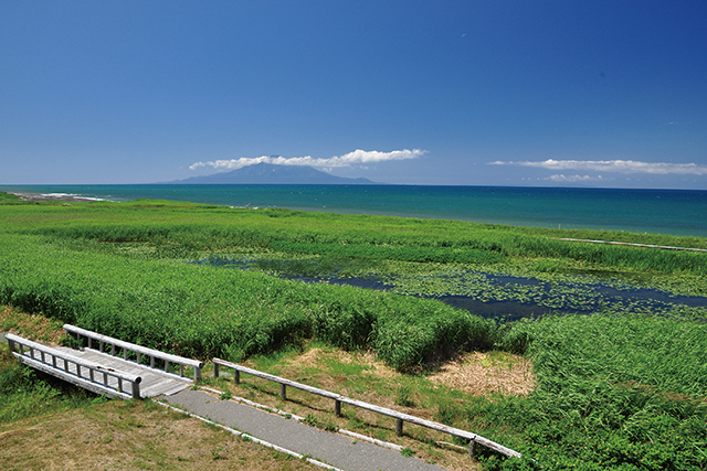 利尻岛(Rishiri-to Island):利尻岛是一个圆锥形的火山岛,由海拔1721米的利尻山组成,山坡遭受侵蚀形成了深谷和锋利的山脊,山脚分散着湖泊和湿地,还有很多泉水。被称为“利尻富士“的利尻山是公园的象征性存在。